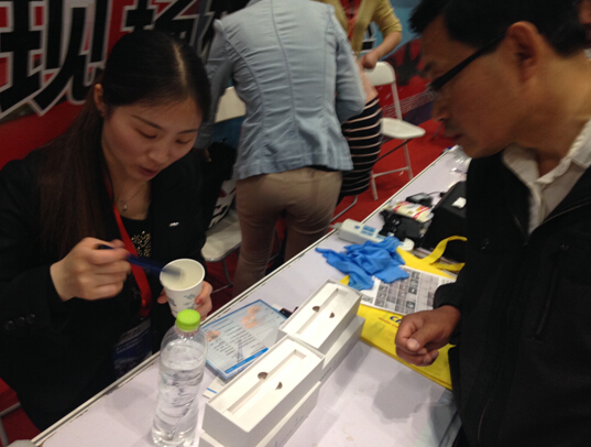图3.参展观众直接用头发做样品。