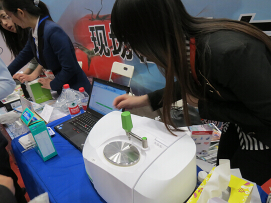 钢研纳克的NX-100F重金属检测仪采用纯国产技术,但精确度丝毫不输国外仪器,主要用于食品中重金属元素的快速检测,3分钟内可实现镉大米的快速筛查,检出限上可以做到低于国家标准以及国际上欧美标准。如今,大米中镉含量超标问题严重,很多参会观众都对大米中重金属检测项目很有兴趣。