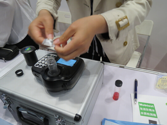 人们对于引用水质是否健康很是关注,所以涉及到水质的检测,都会吸引参展观众的驻足观看,此款水质快速检测仪,外观小巧靓丽,非常轻便,定价在300左右,只需将检测头置于待检测的水质样品中就可测定其PH值,操作丝毫不复杂,非常适合民用市场。