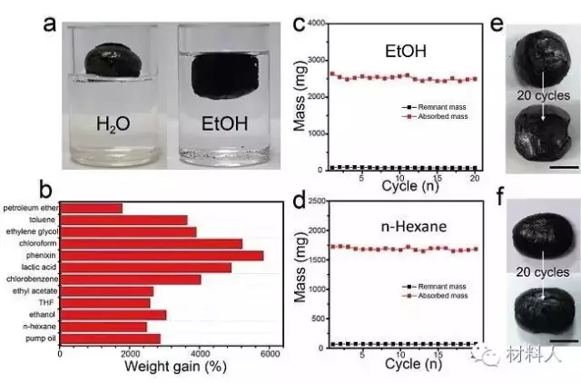 图3、酚醛碳气凝胶有机溶剂吸收能力