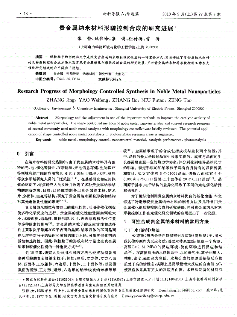 水热/溶剂热法形貌控制合成铜基微纳米晶体颗粒材料的研究进展