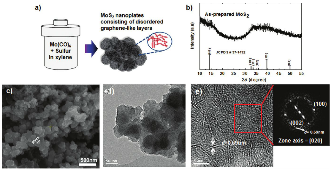 MoS2 Nanoplates Consisting of Disordered Graphene-like Layers for High Rate Lithium Battery Anode Materials, Nano Lett., 11(2011), 4826.